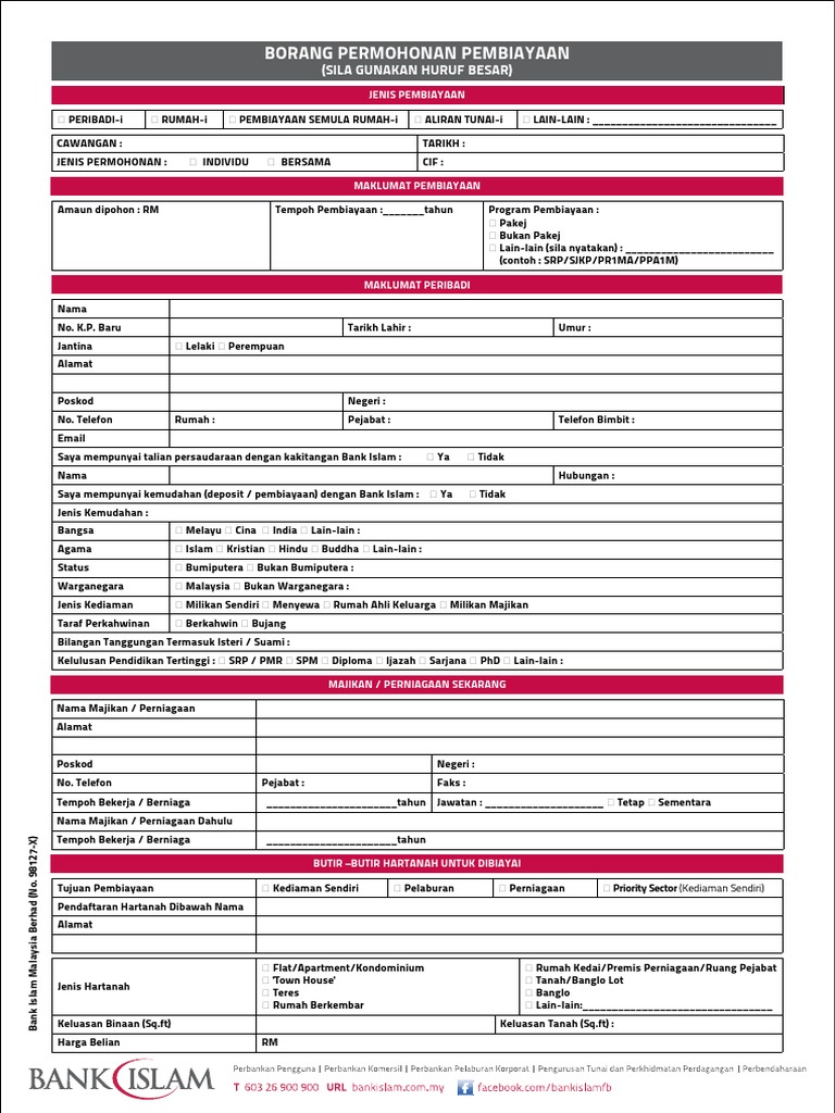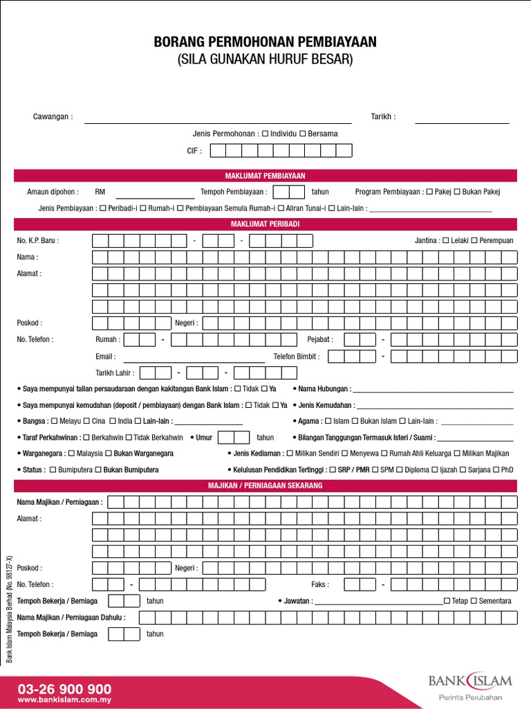 Borang Permohonan Pembiayaan Bank Islam Fill Online Printable Fillable Blank Pdffiller