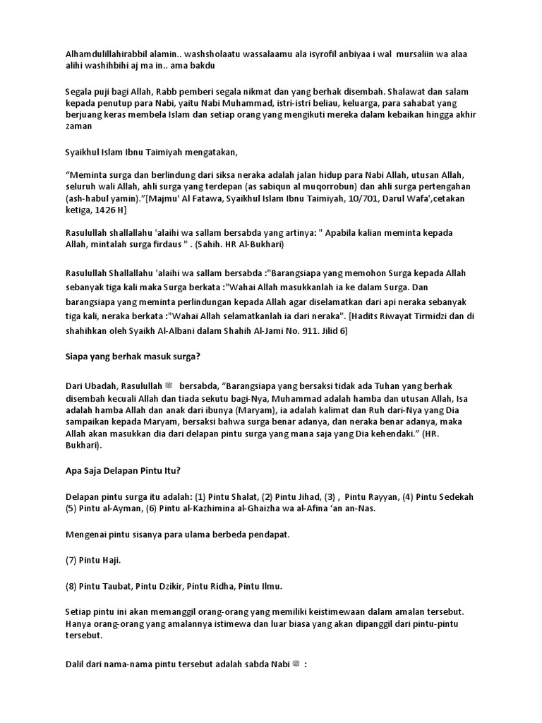 8 Pintu Surga Dan Para Penghuninya Seruni Id